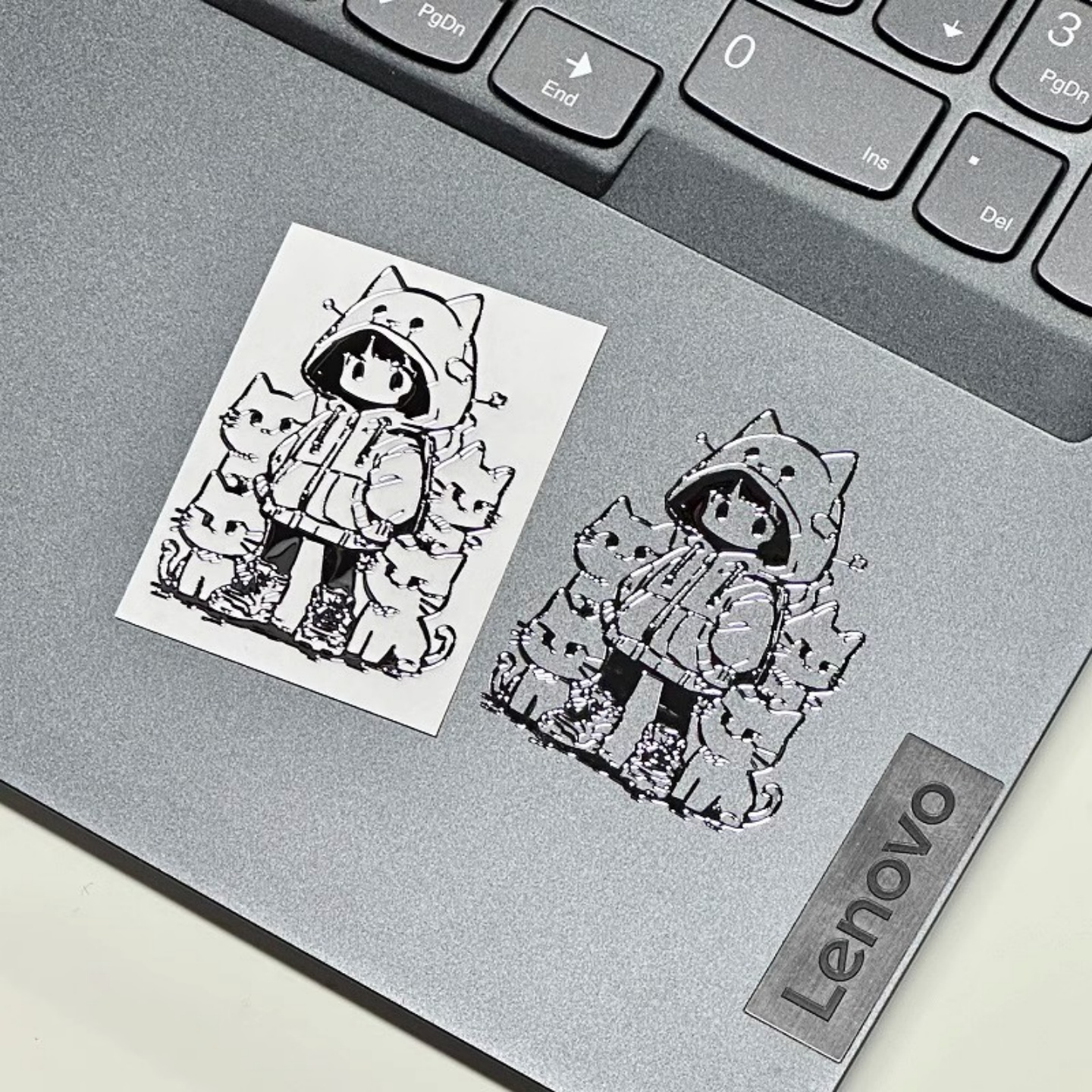 小红书小猫女孩3D立体金属贴纸卡通创意防水装 INS 饰贴高级感手机电脑手机壳卡通可爱少女diy多巴胺风格