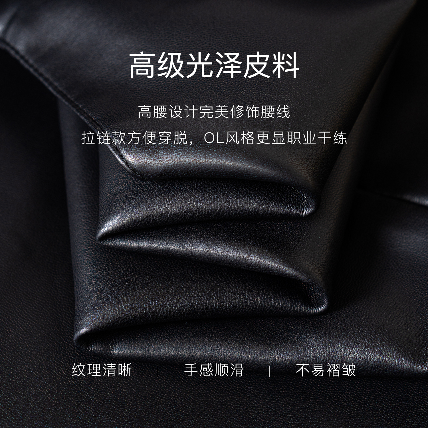 新款 罗衣摩登经典 皮裙2025秋季 修身 百搭通勤直筒半身裙12741 时尚
