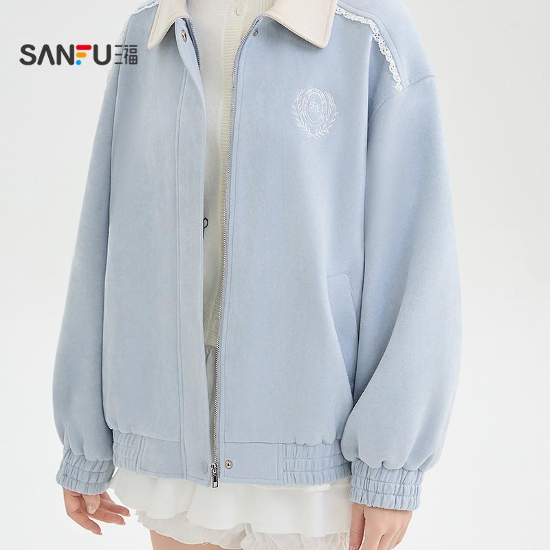 韩版 2025新款 复古宽松高级感小个子夹克上衣 秋季 麂皮绒外套女短款