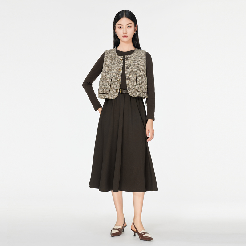 高级感名媛马甲连衣裙两件套 新款 飘蕾气质小香风套装 女2025年秋季