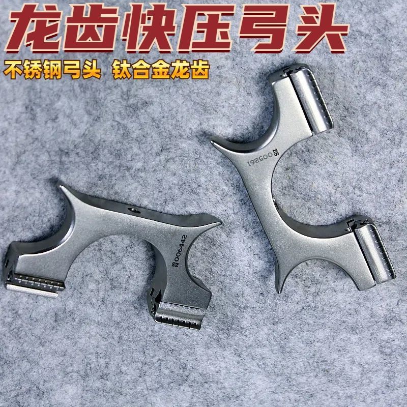 龙齿快压弹弓弓头9025按扣配件不锈钢钛合金卡扣扁皮强力户外精准