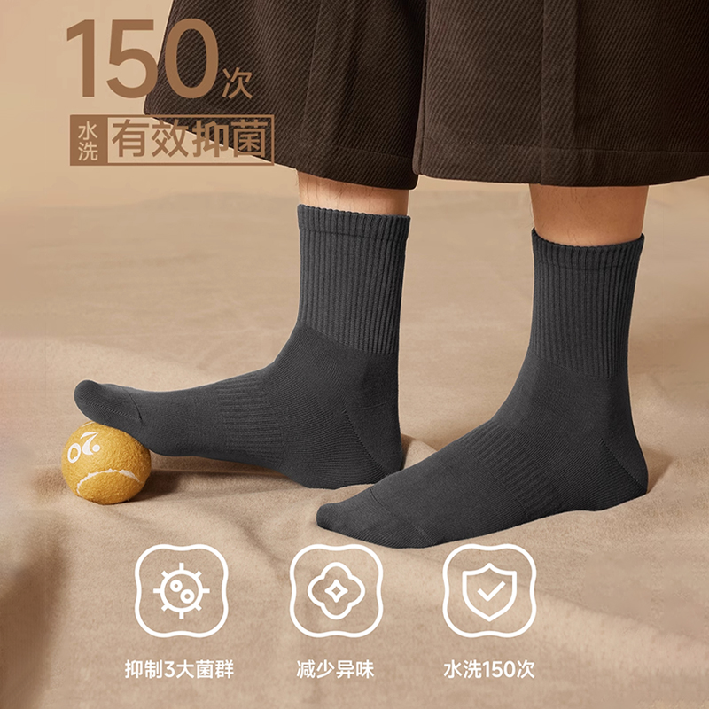 7A抗菌 蕉内银皮301S袜子男中筒袜吸汗防臭运动短袜秋冬长袜棉袜