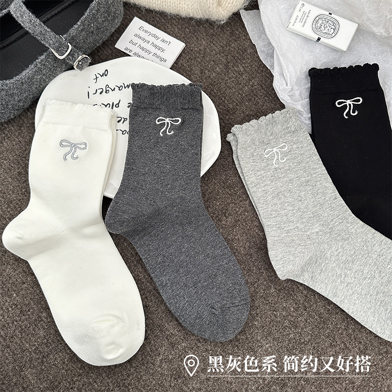 棕咖色月子长袜 乐福鞋 木耳边堆堆袜子女秋冬季 纯棉中筒袜配小皮鞋