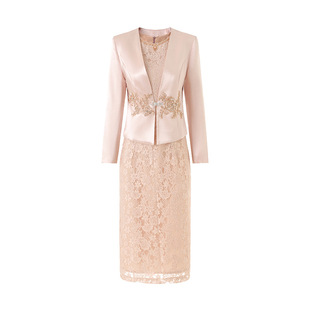缎子礼服显气质高贵婚宴晚礼服 香槟色两件套妈妈装 2025年秋季 新款