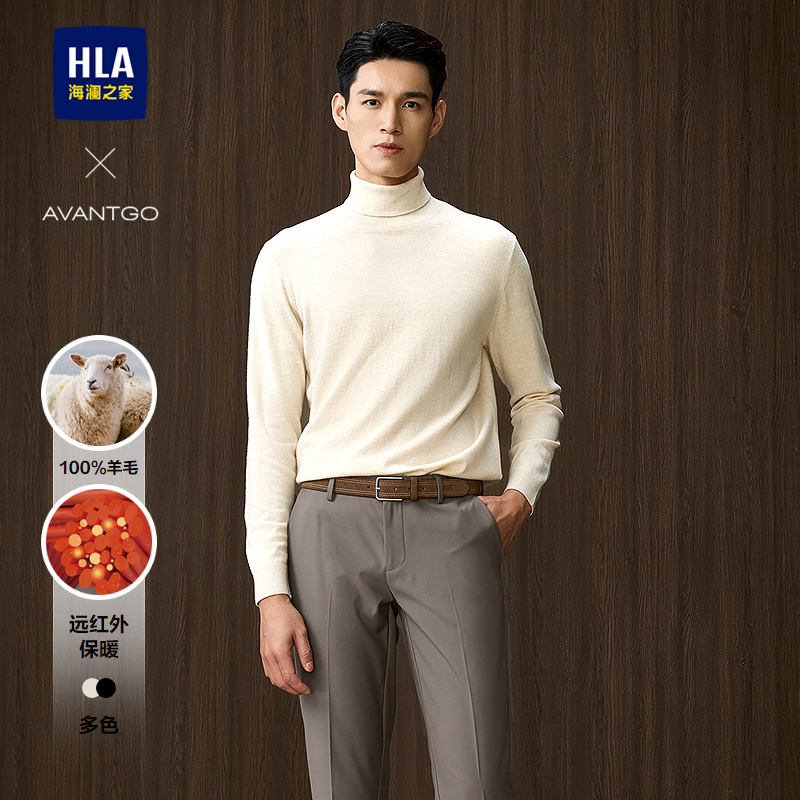 新款 25秋季 可翻高领毛衣男 海澜之家轻商务远红外纯羊毛针织衫 HLA