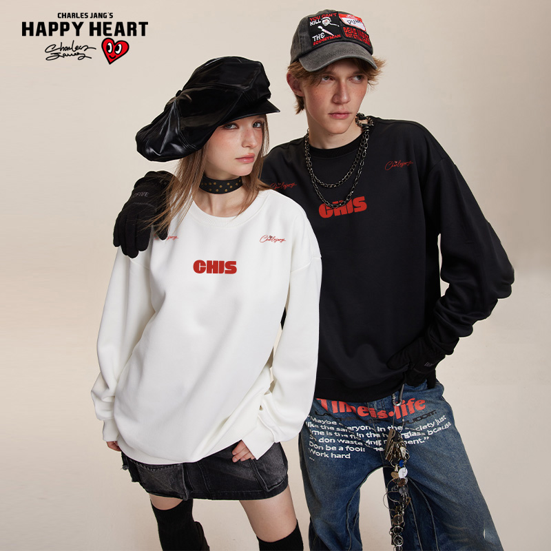 潮牌百搭宽松情侣上衣 字母印花卫衣男圆领秋冬季 查尔斯桃心 美式