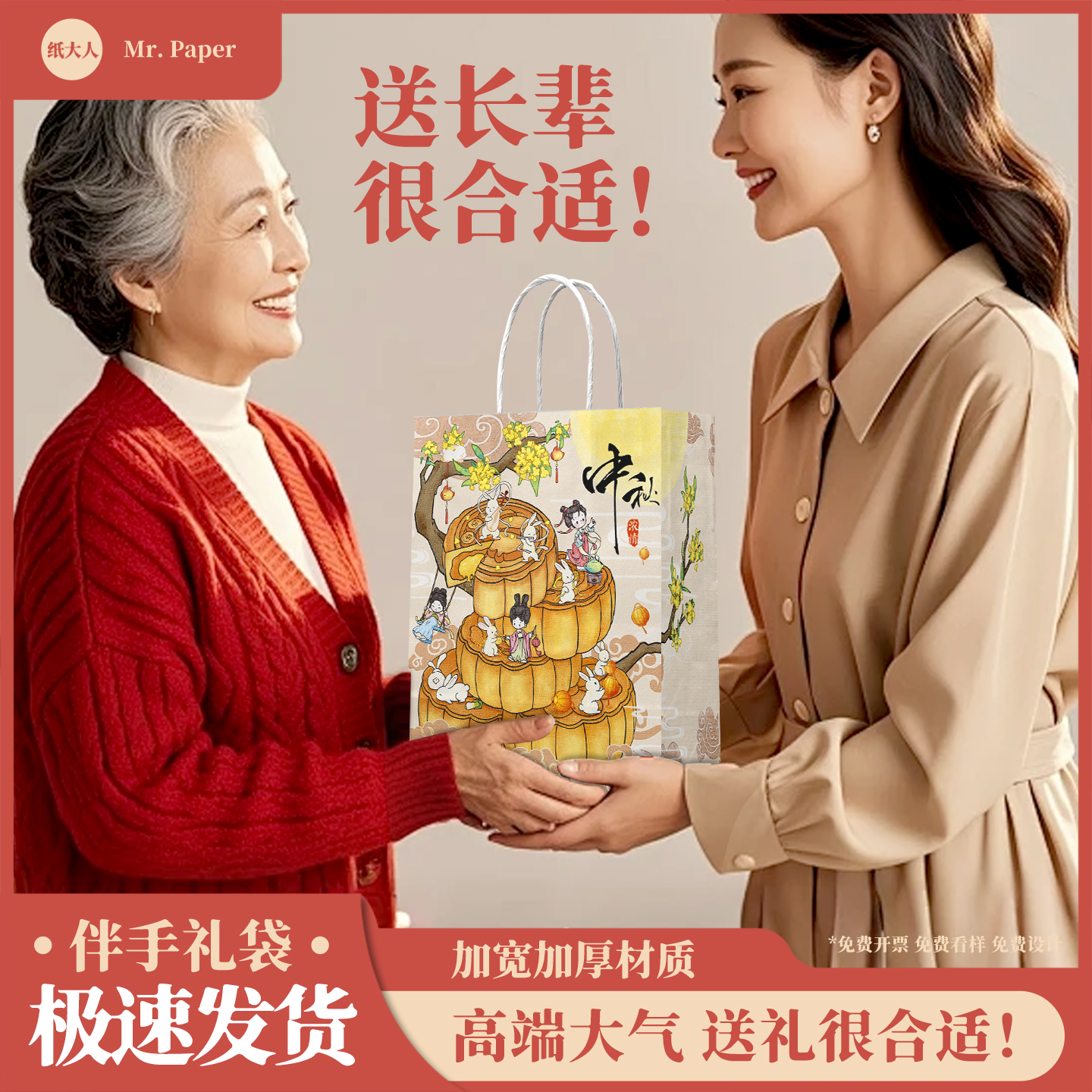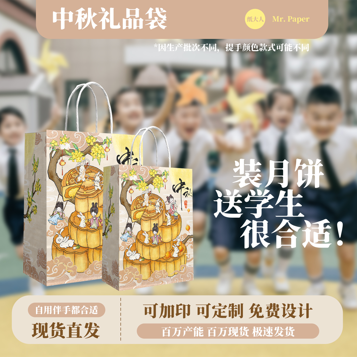 中秋礼品袋2025新款 袋纸袋子月饼手提袋定制印logo 礼盒牛皮纸包装
