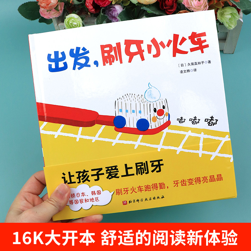 正版 出发刷牙小火车宝宝刷牙齿硬壳儿童绘本0 3岁幼儿园入园准备阅读故事书习惯养成讲卫生宝宝绘本趣味亲子阅读K 童书