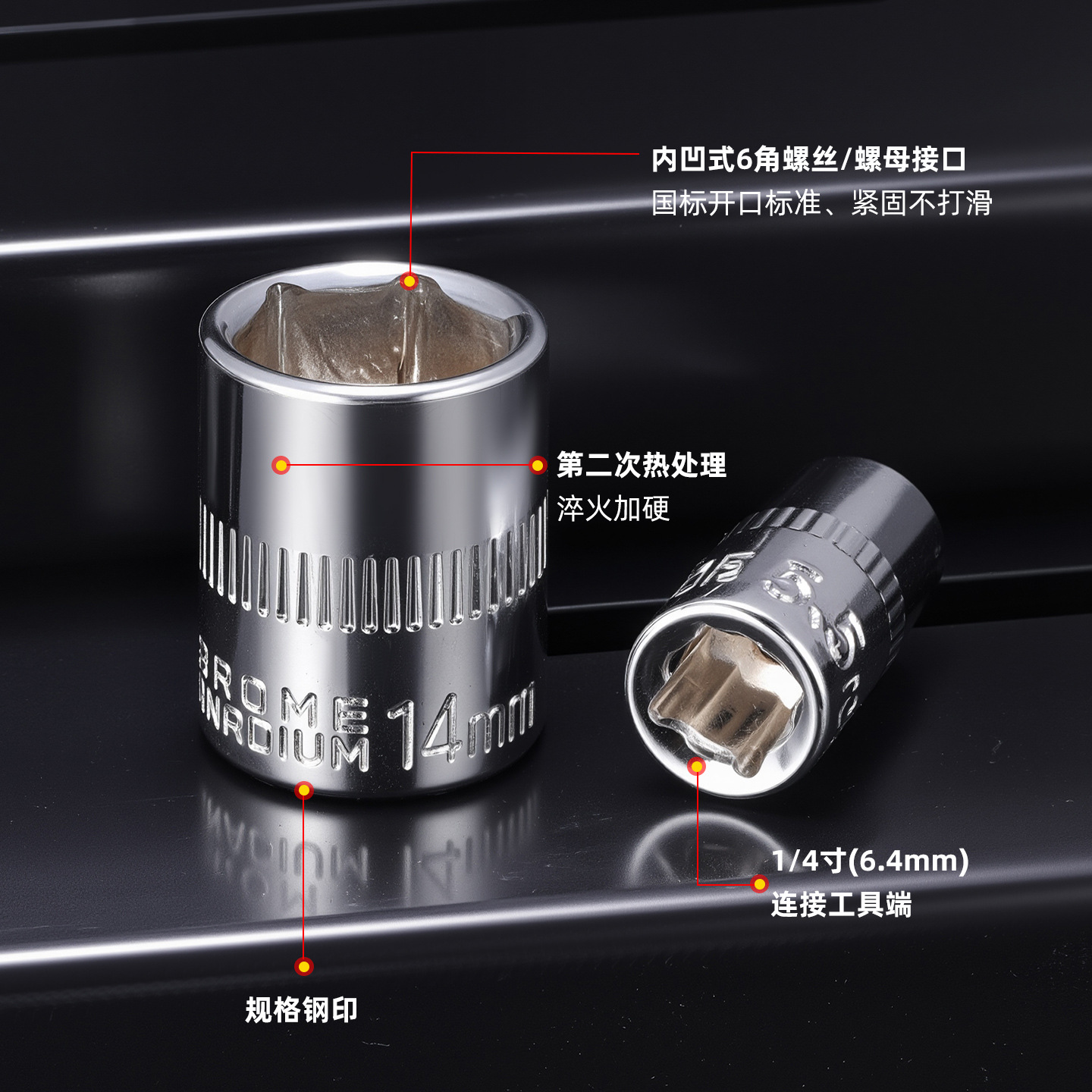 4套筒短套筒外内六角套筒套头子6.3MM小飞套筒汽修机修工具