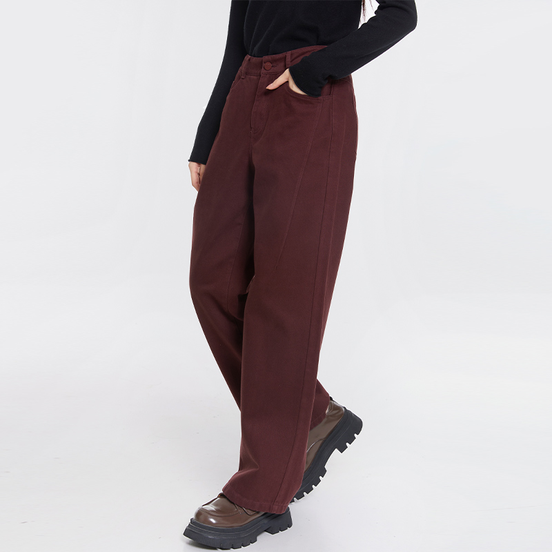 子 女2025加绒显瘦穿搭直筒阔腿长裤 自然涩秋冬季 侧拉链黑色牛仔裤
