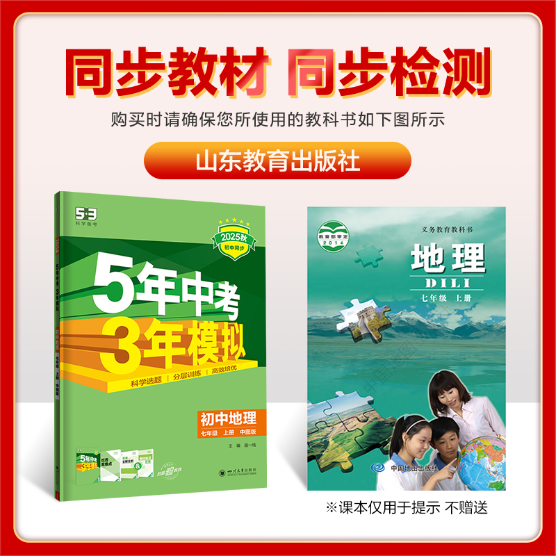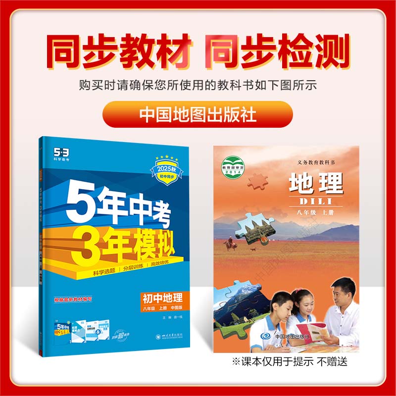 初中生七八年级上册下册同步练习册试卷初一初二初三必刷题训练题教辅 五年中考三年模拟地理中图版 中图版 专用2026新教材