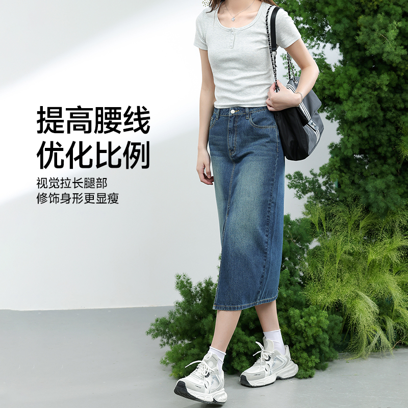 KMV真维斯蓝色牛仔半身裙女2025秋季 高腰显瘦小个子a字中长裙 新款