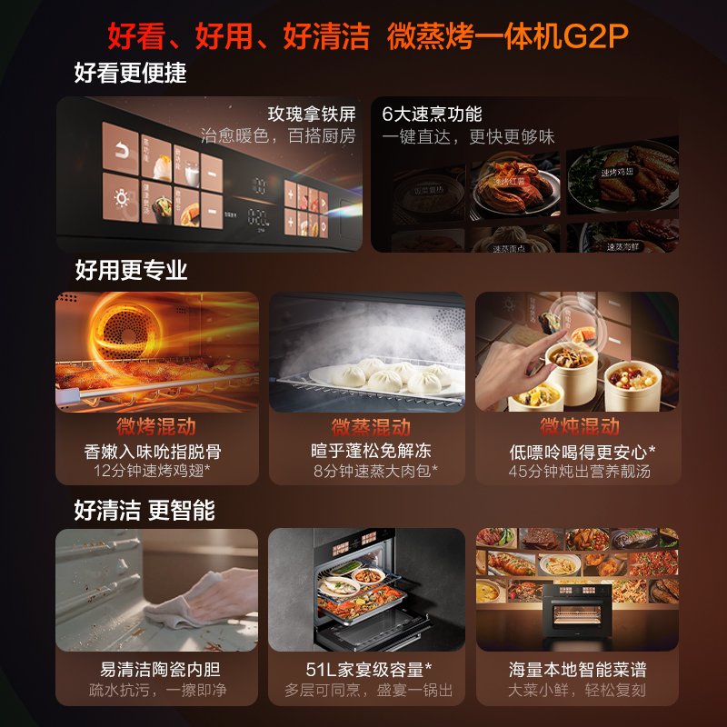 微波炉炖炸五合一官方旗舰 方太微蒸烤一体机G2P嵌入式 新品