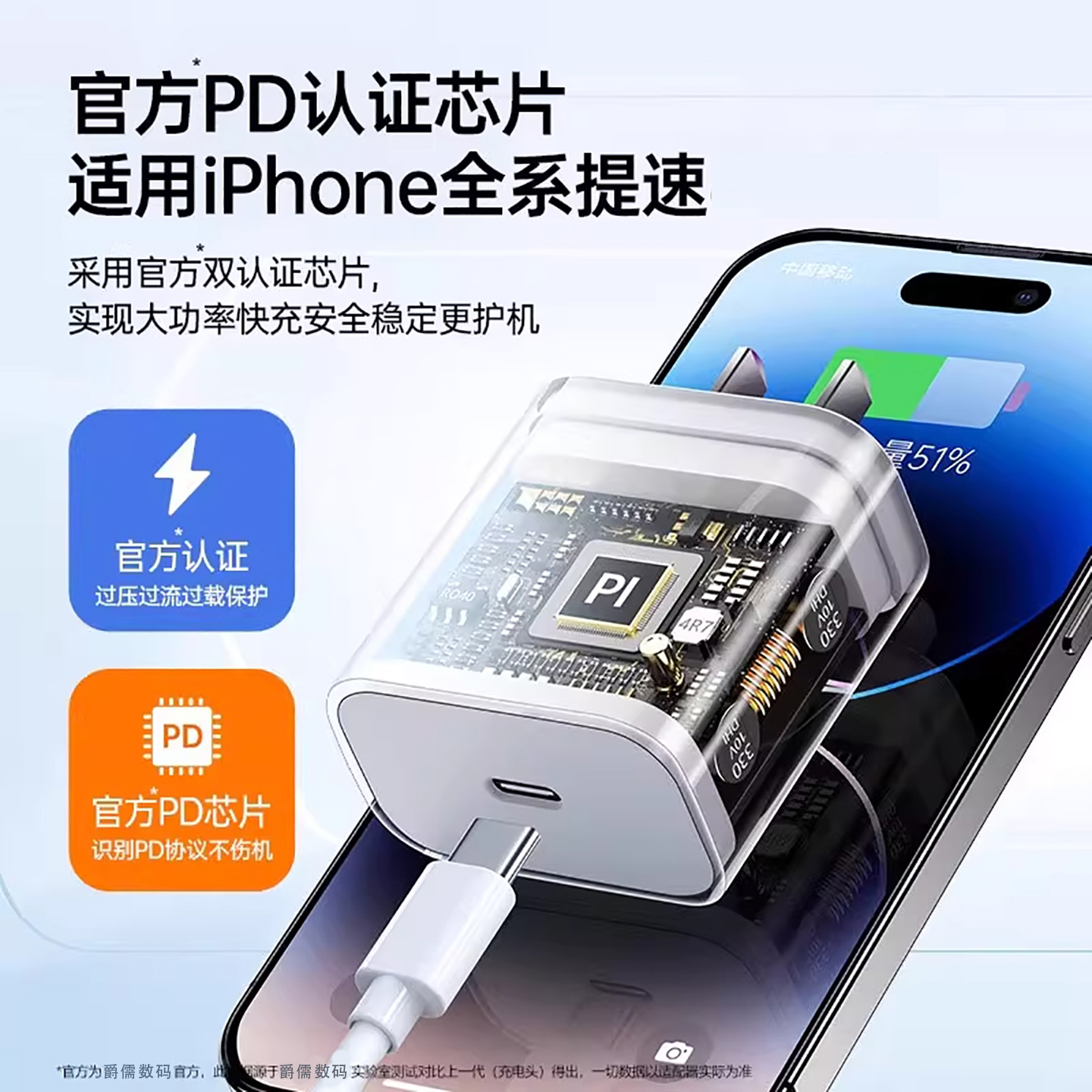 pd插头数据线45w套装 图拉斯小冰块适用苹果17充电器头iphone16promax快充头正品 usbc手机双40W papi酱同款