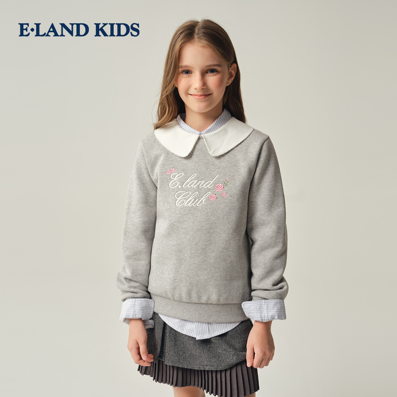 刺绣甜美娃娃领长袖 女童卫衣2025年冬新品 上衣 kids衣恋童装 eland