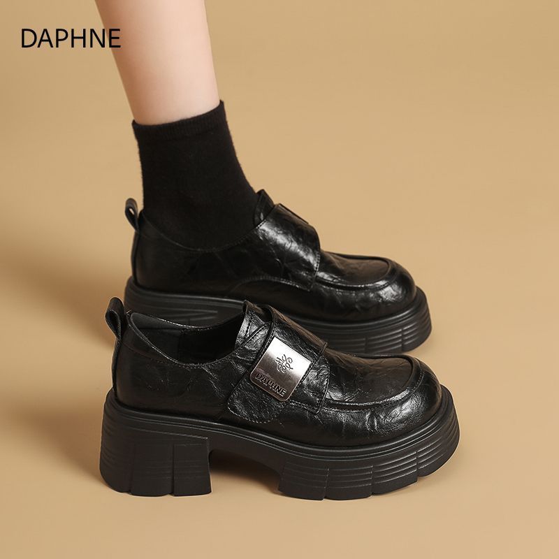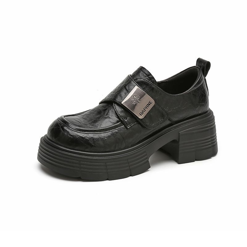 复古单鞋 达芙妮厚底乐福鞋 魔术贴英伦风黑色小皮鞋 新款 女2025秋季