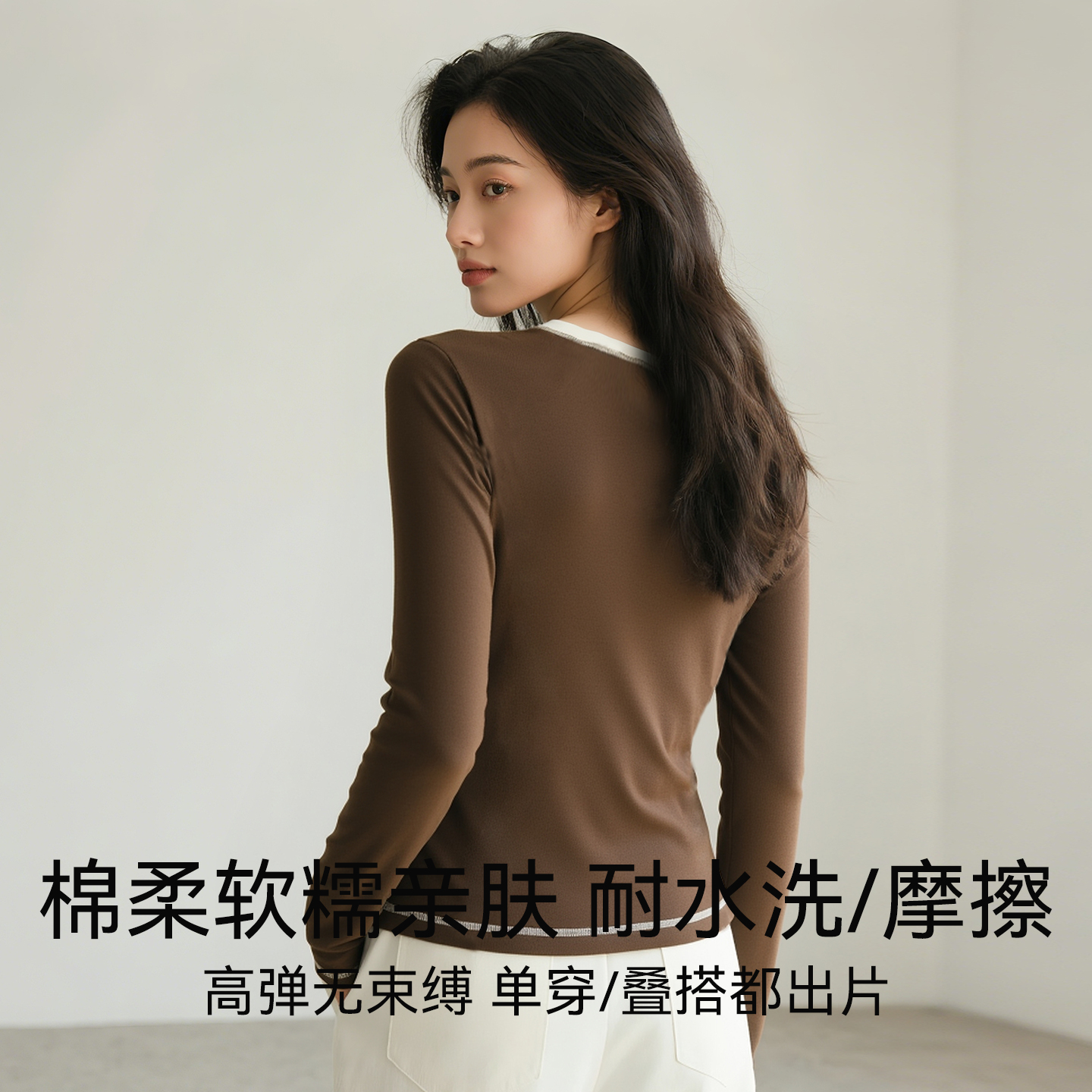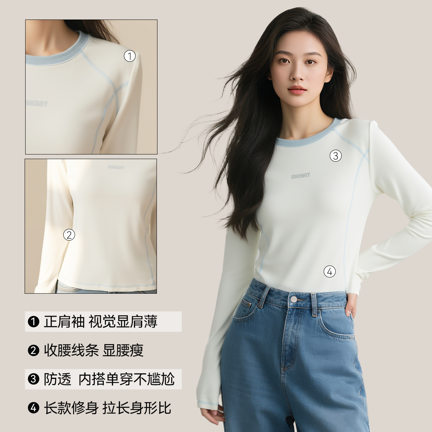 2025新款 女装 韩系德绒针织内搭正肩小个子t恤上衣 打底衫 早秋长袖