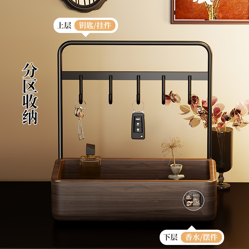 实木钥匙收纳盒入户门口钥匙挂架鞋 柜上复古高颜值摆件首饰放置架