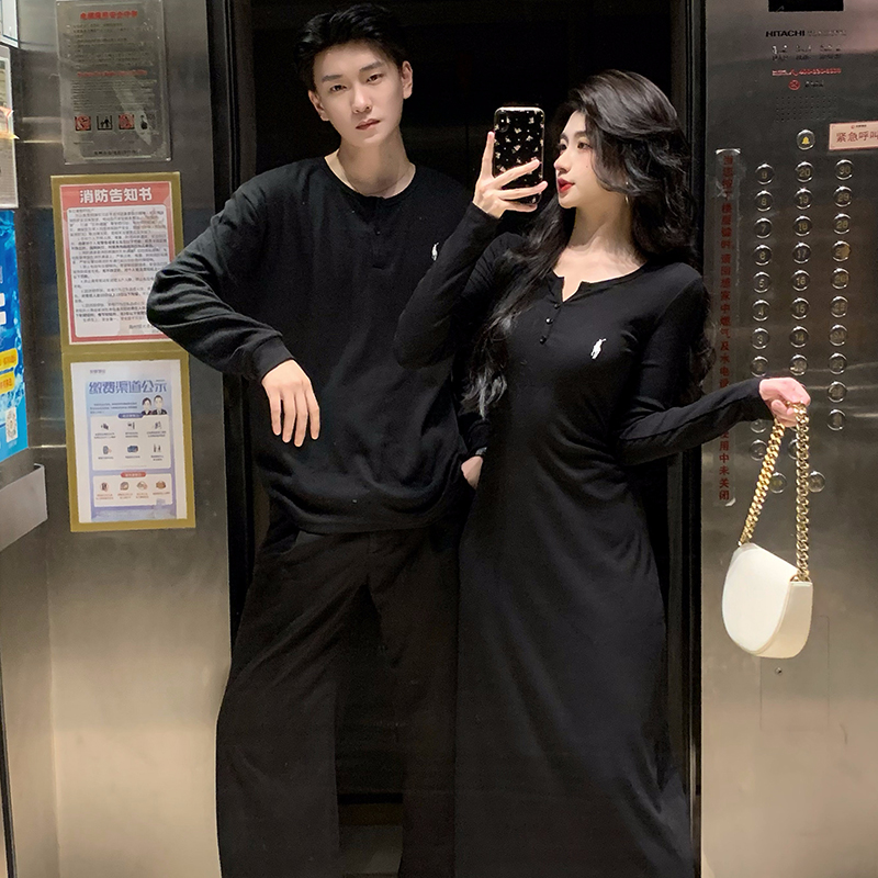 赫本风挂脖长袖 高级感气质露肩收腰黑色a字千金裙 连衣裙女早秋季