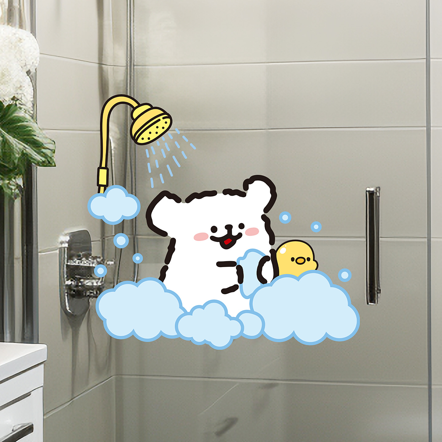 洗澡小狗玻璃贴纸装 饰卫生间浴室门窗户防水可爱卡通无胶静电贴画
