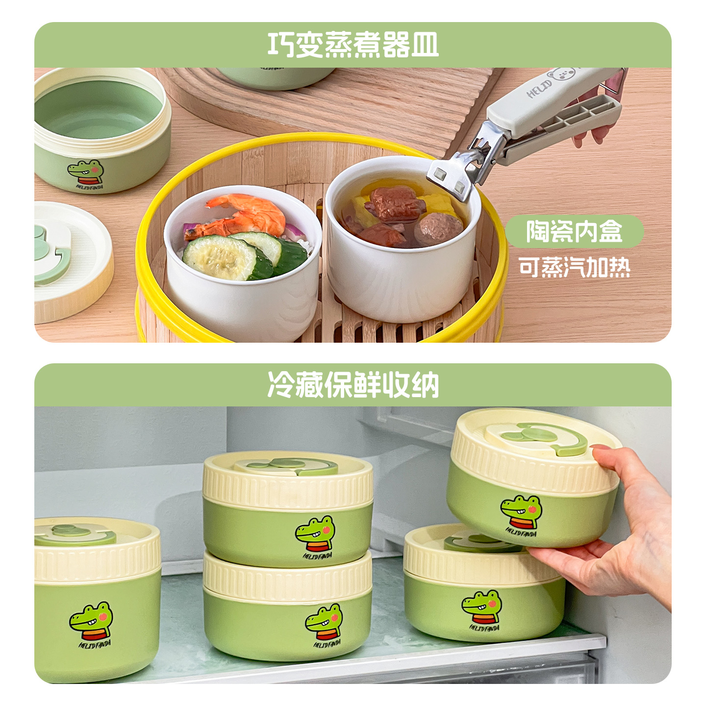 陶瓷保温桶注水加热保温碗学生上班族保温饭盒便携式 保温餐盒汤罐