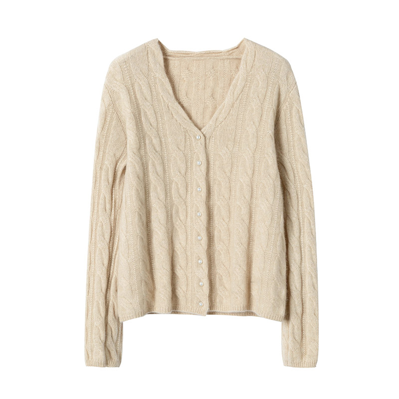 COCOBELLA气质原色V领仿羊绒针织衫 毛衣MZ3112 女通勤松弛小喇叭袖