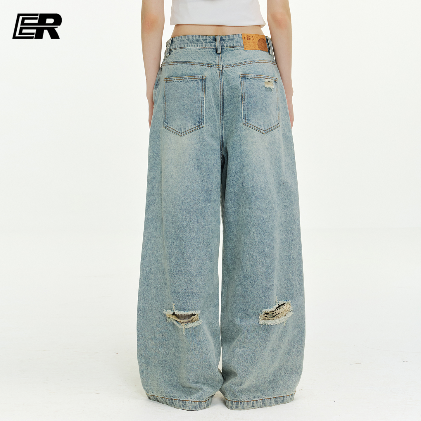 女 宽松复古磨白猫须中腰休闲弯刀香蕉阔腿牛仔裤 ONLY2025冬季 新款