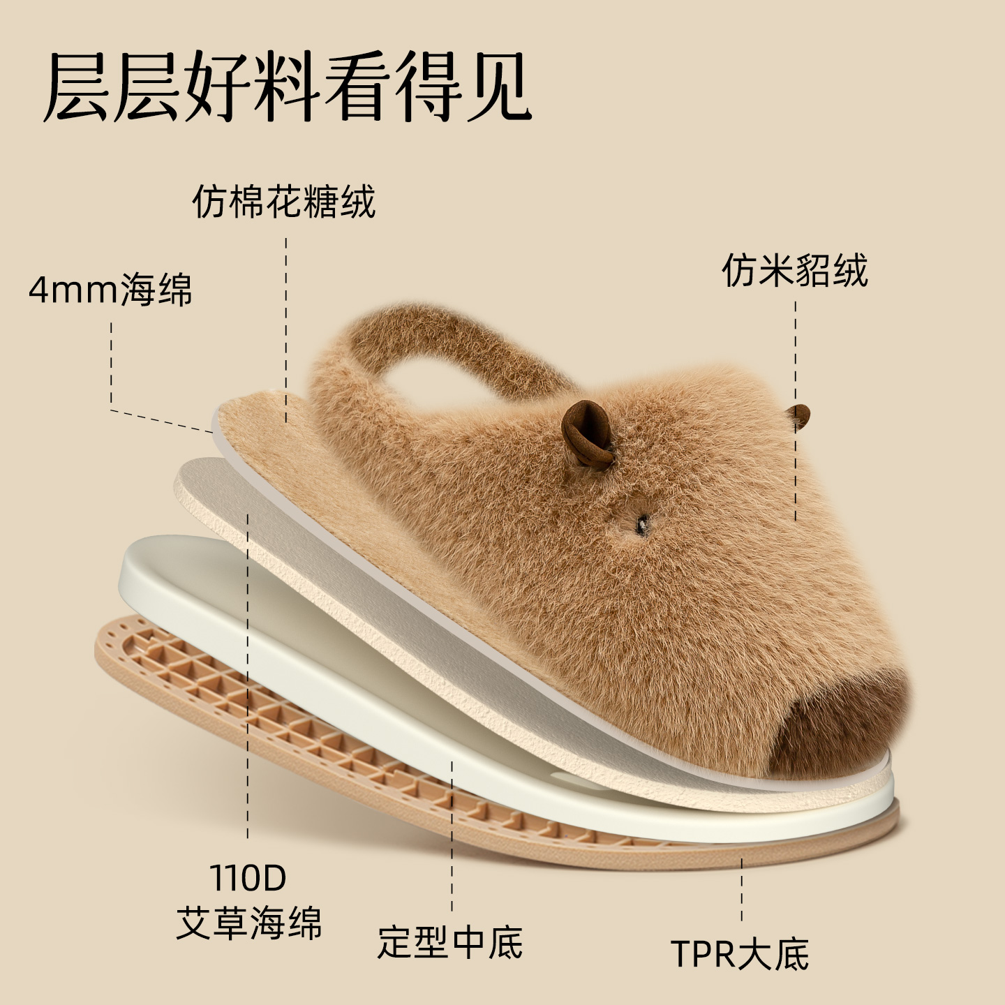 室内家居家厚底保暖棉鞋 包跟棉拖鞋 毛毛绒拖鞋 2025新款 女士 女冬季
