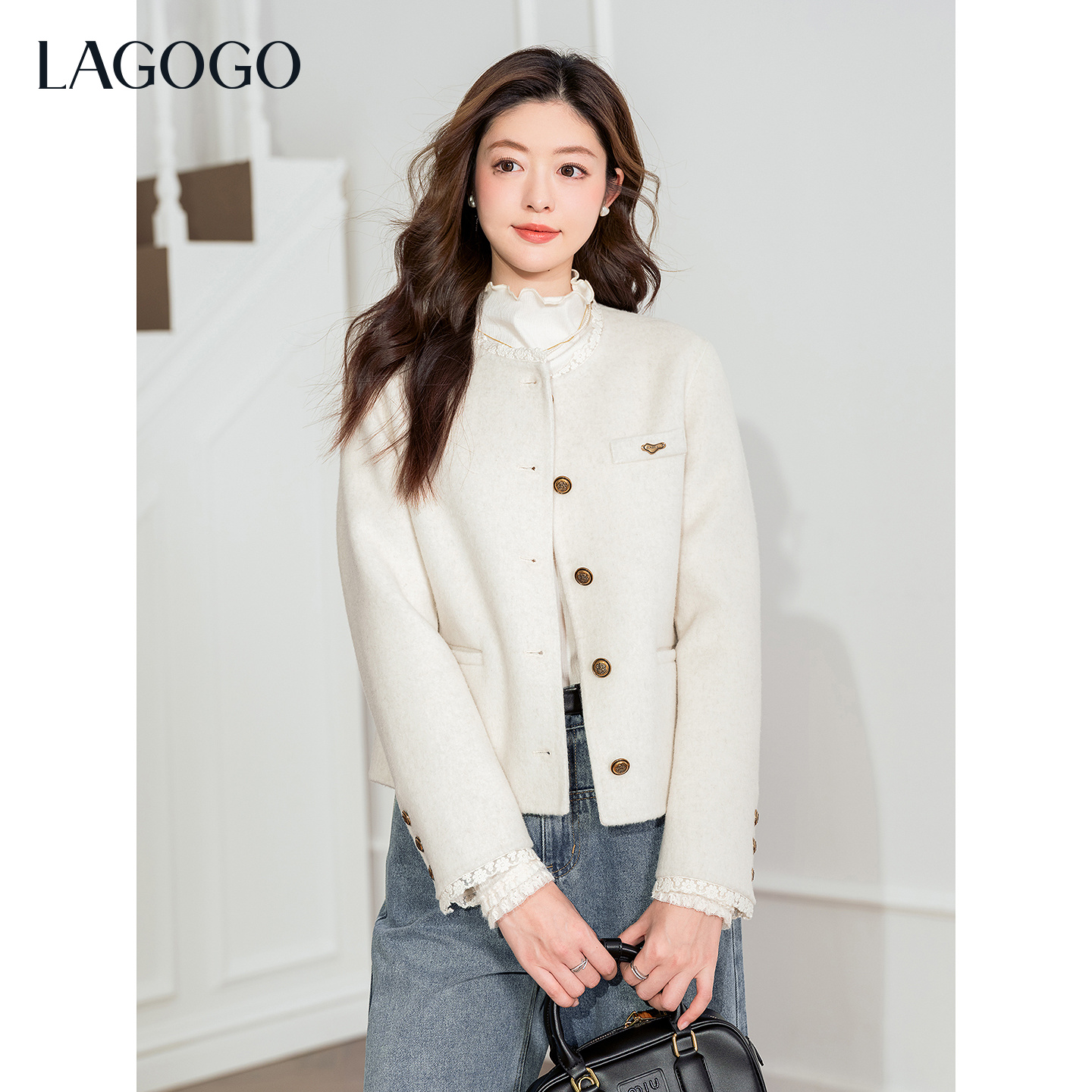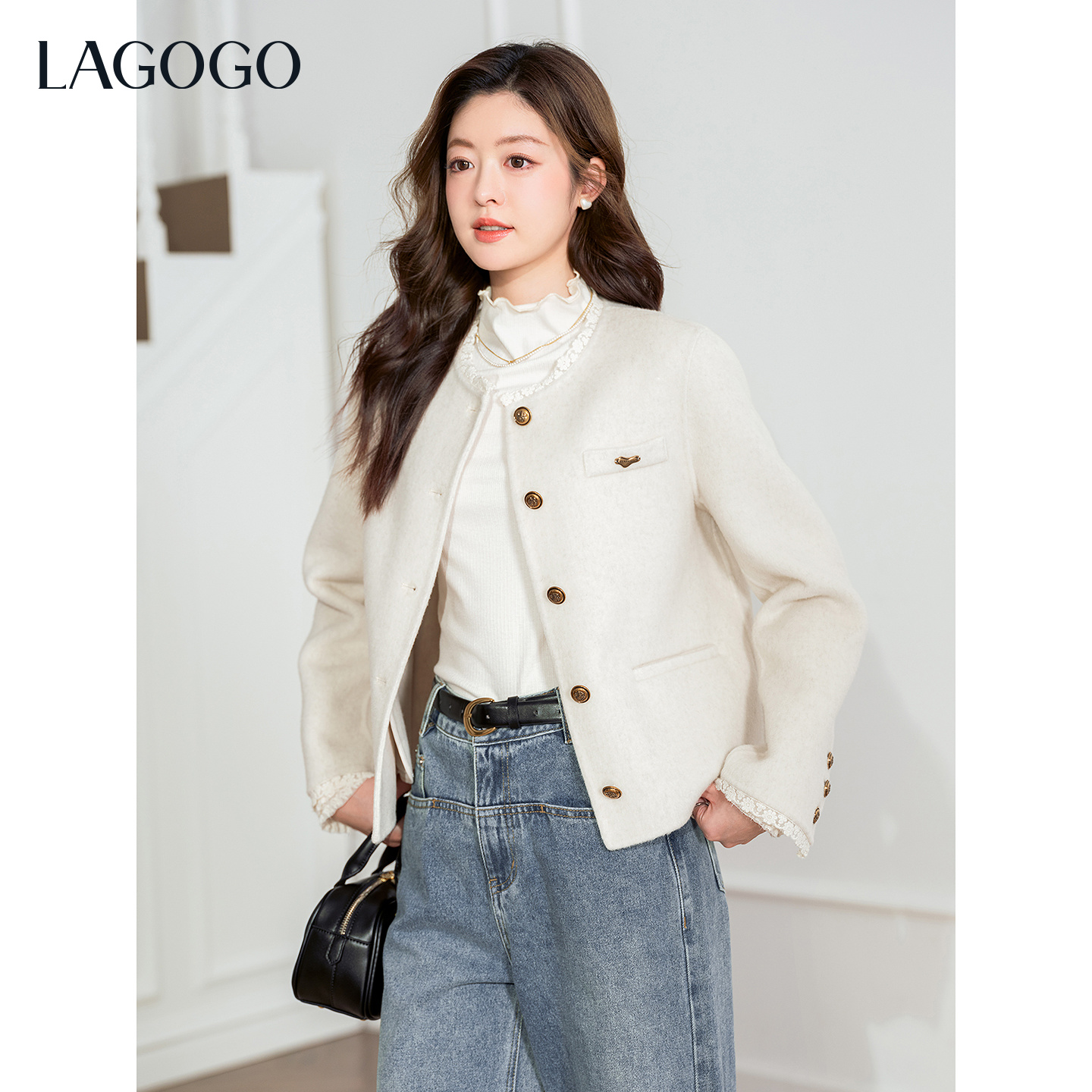 圆领大衣女小个子气质毛呢外套 高端羊毛双面呢短款 2025年春季 新款