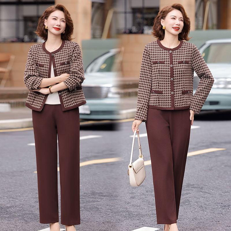 阔太太小香风上衣套装 中年妈妈时尚 新款 女2025春秋装 洋气两件套装