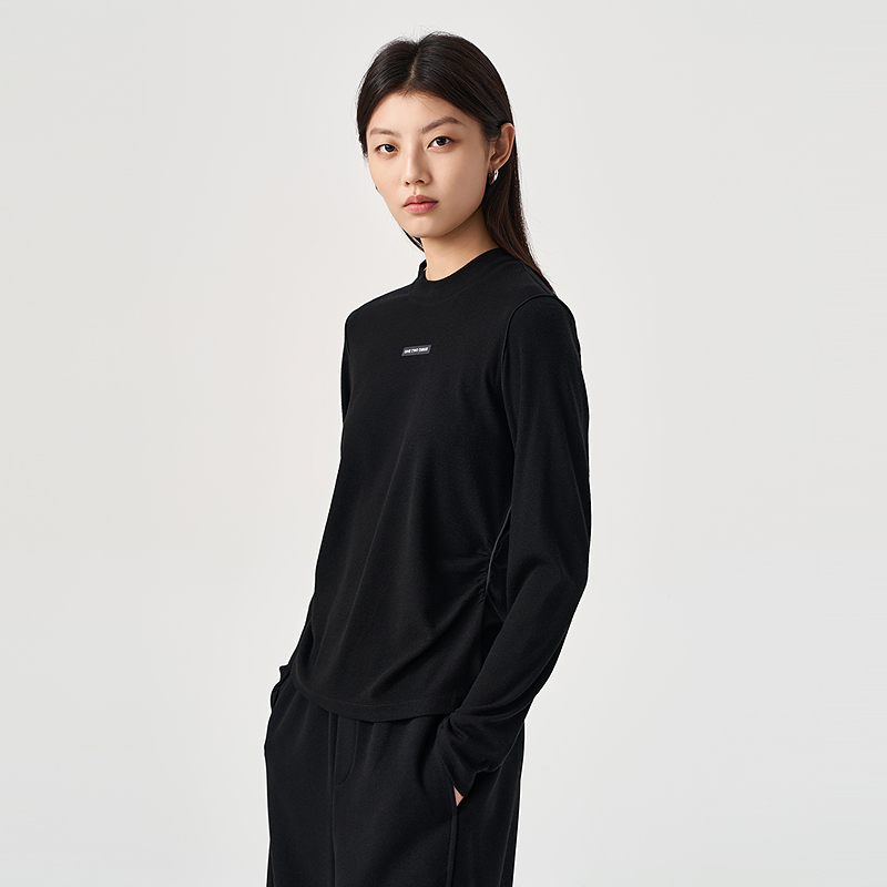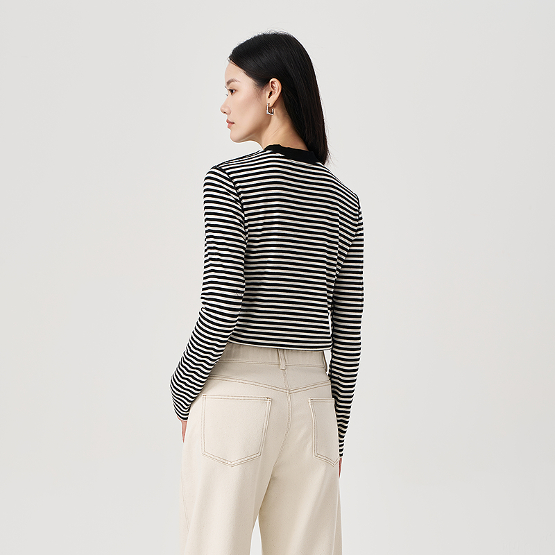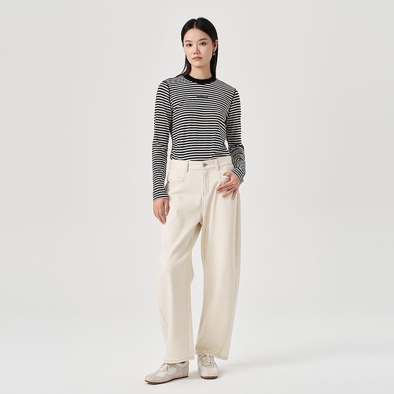 圆领基础款 经典 字母印花条纹收腰百搭打底T恤女 新品 OTT2025冬季