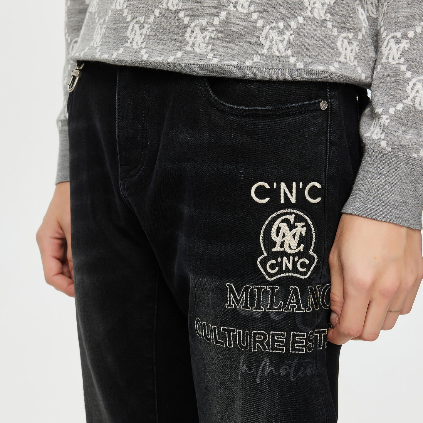 付定加赠 男士 cnc男装 logo刺绣磨毛保暖牛仔裤 休闲 25秋冬新款