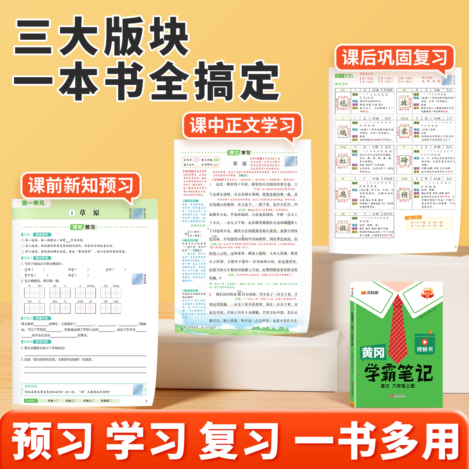 同步课本讲解教材解读全解复习预习资料书随堂笔记 北师苏教青岛版 2025新版 六年级上册黄冈学霸笔记小学课堂笔记语文数学英语人教版