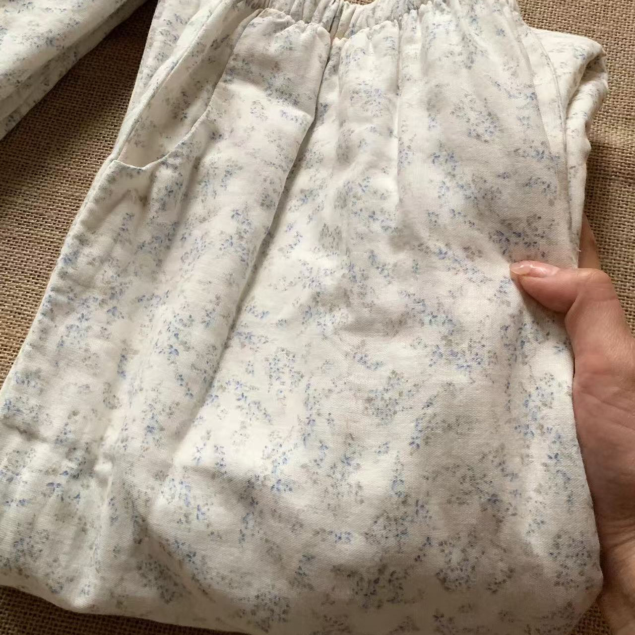 睡衣娃娃领家居服外穿 长裤 新品 a类全棉双层纱布小碎花花边长袖