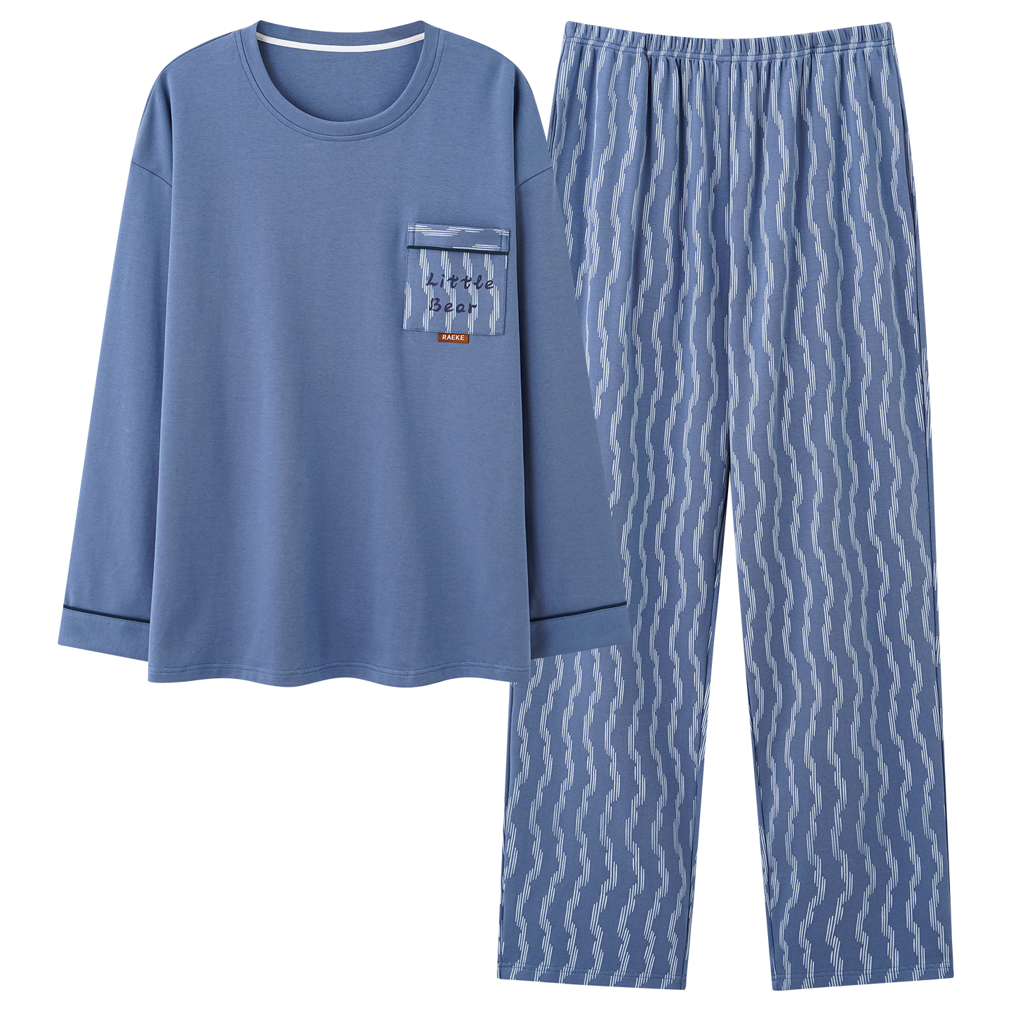 睡衣春秋2025新款 套装 高级感纯棉家居服男款 长裤 长袖 都市丽人男士
