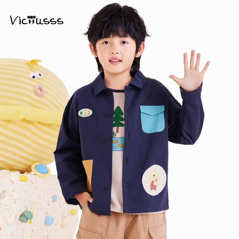 viciusss丸社男童衬衫 儿童春秋衬衣男孩休闲百搭上衣外套 2025新款