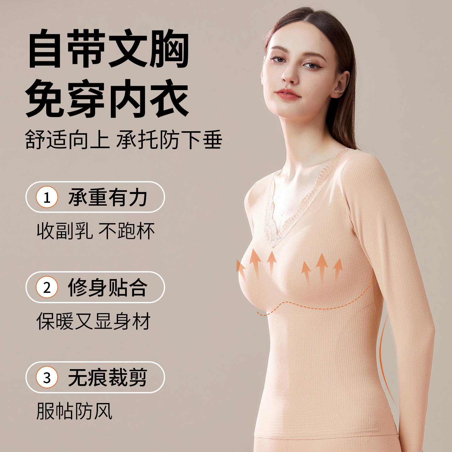 都市丽人羊绒蚕丝保暖内衣女士秋衣秋裤 打底 上衣带胸垫一体秋冬季