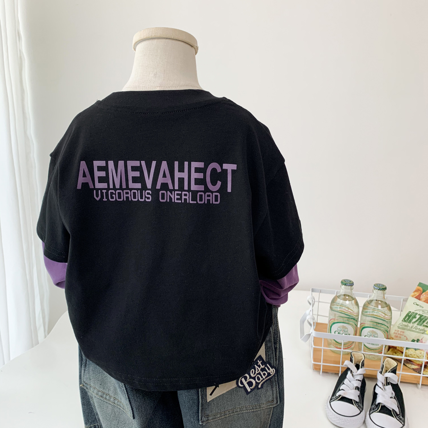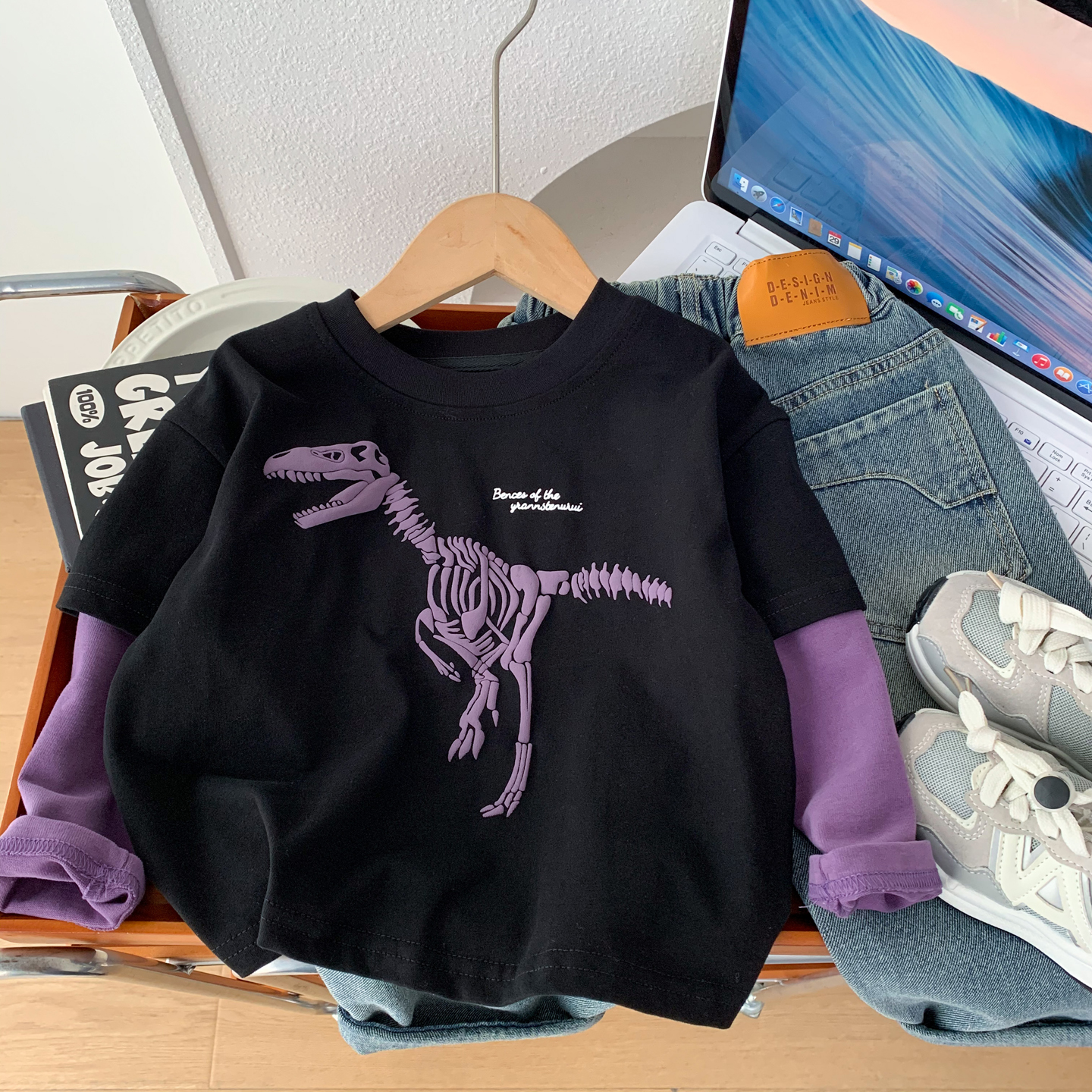 男童恐龙长袖 T恤帅气小男孩休闲假两件潮T2025春秋儿童纯棉打底衫