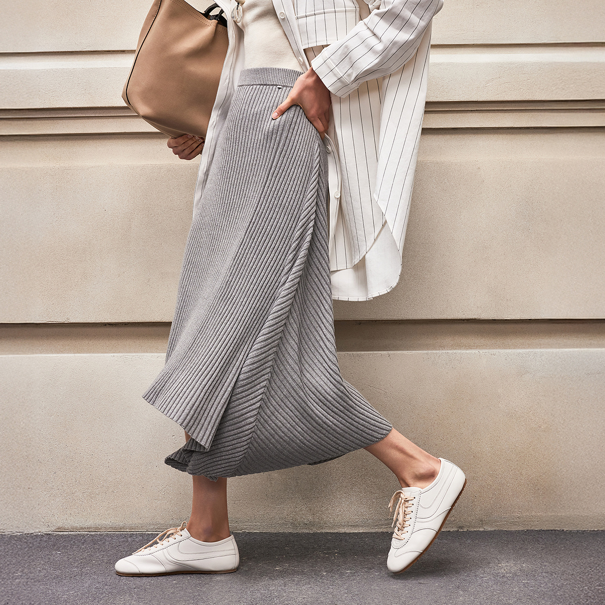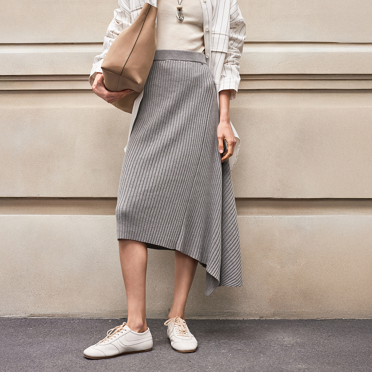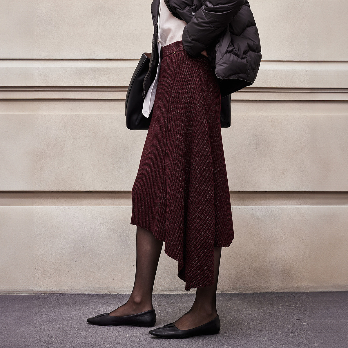 女半身裙 百搭流行精制亮丝不对称下摆针织长款 BCBG25早秋新款 时尚