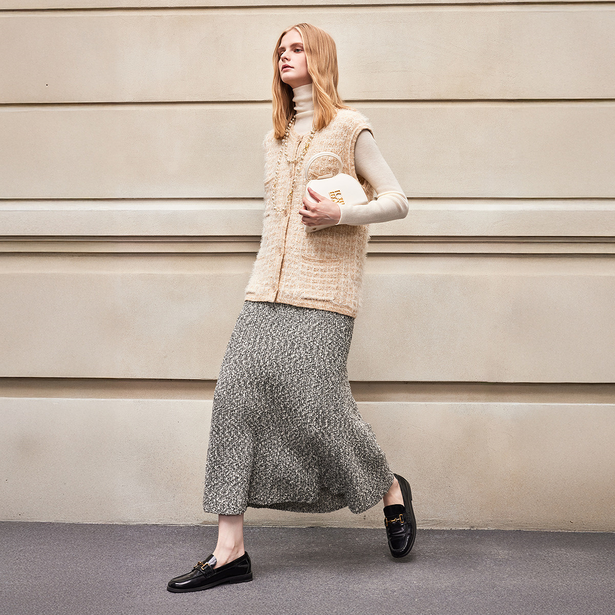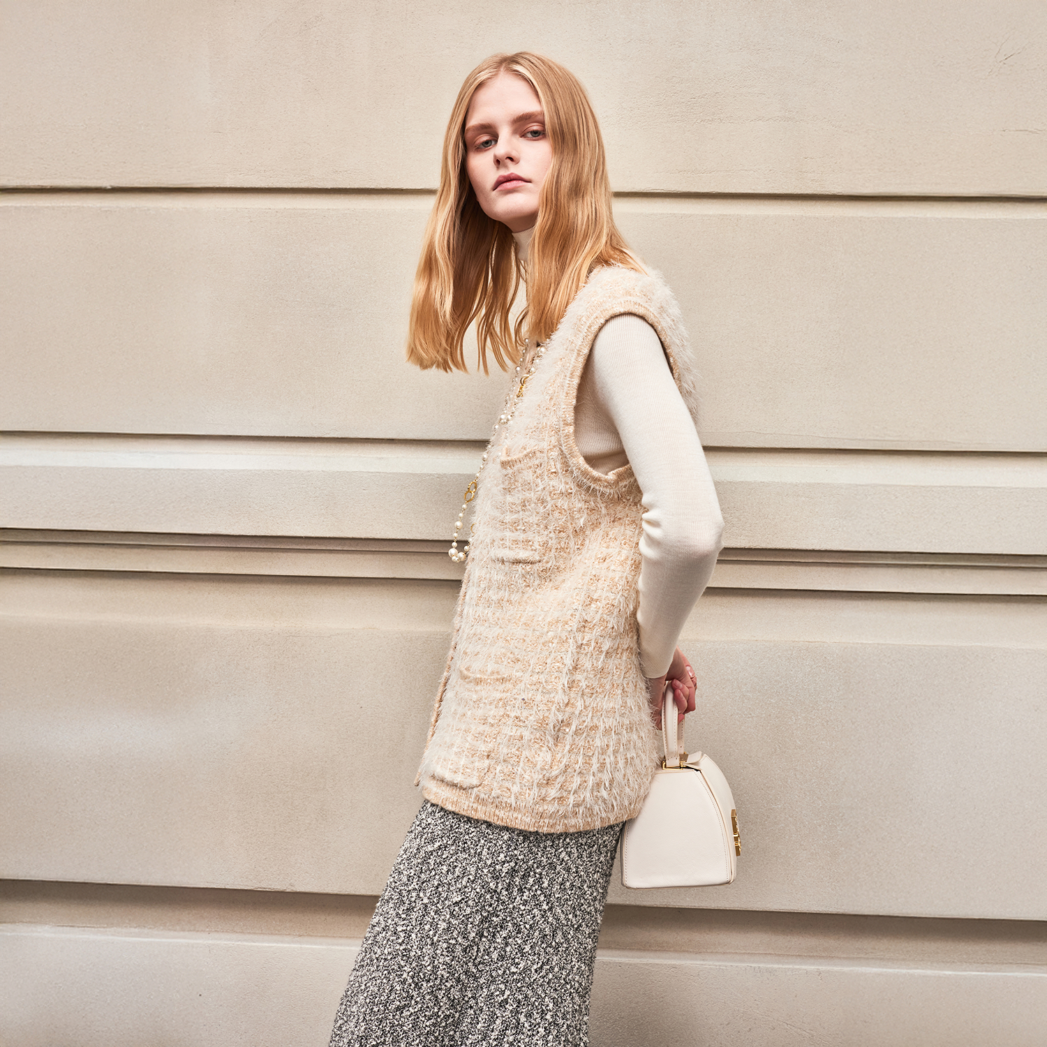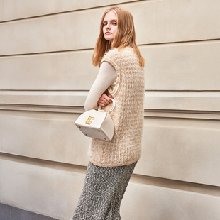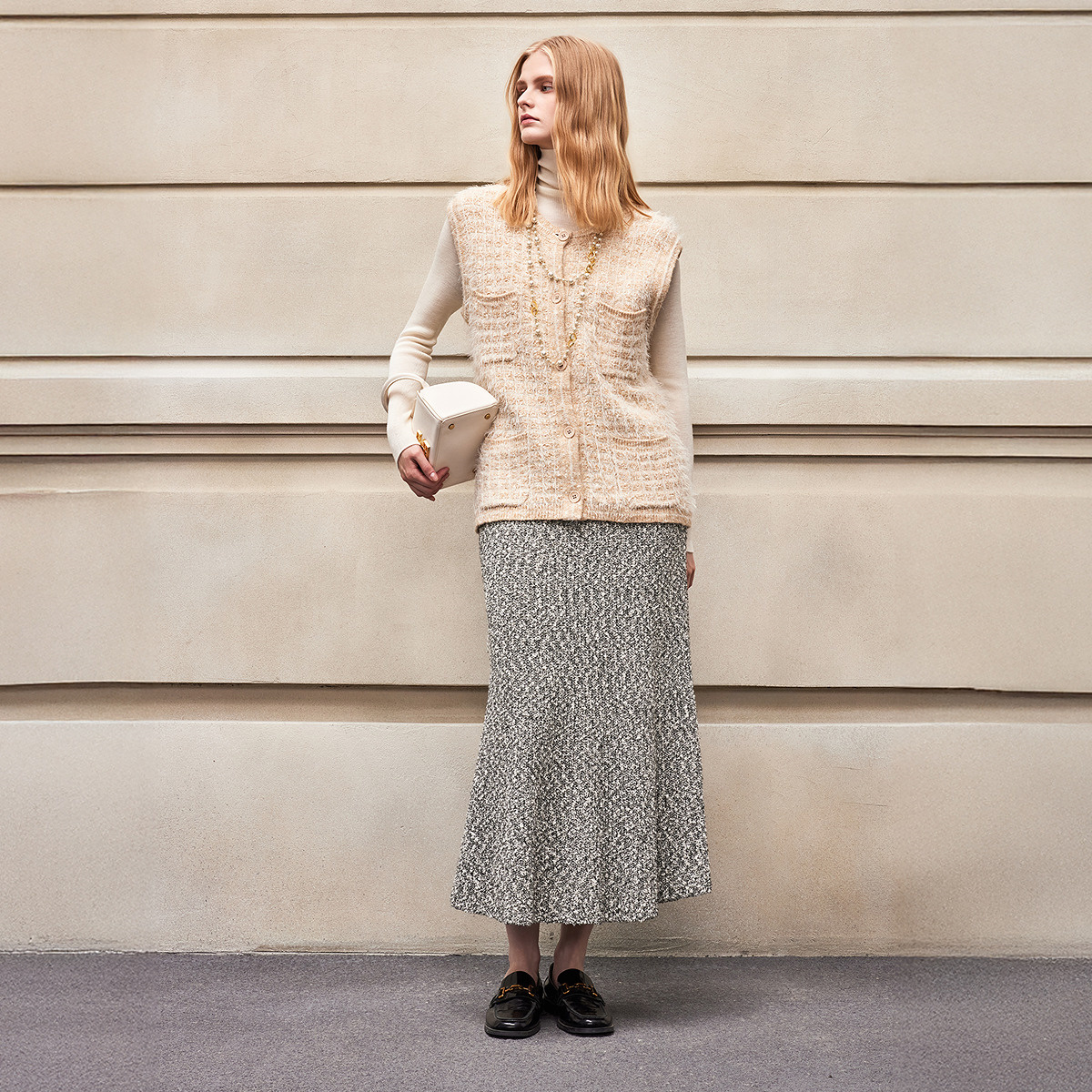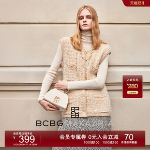 BCBG25早秋新款 流行百搭精致亮丝圆领花纱小香风女士针织外套 时尚
