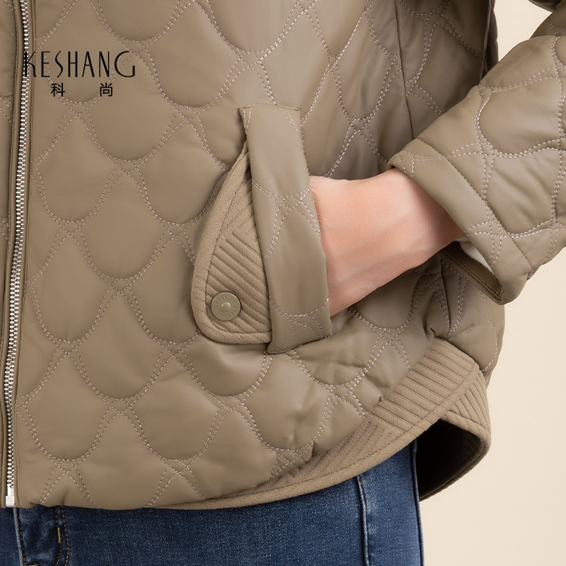 灯芯绒绗缝尼龙慵懒风翻领外套1298259 新款 HM女装 棉服2025秋季
