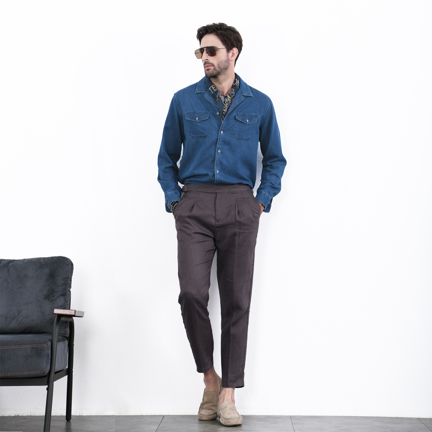 时尚 汉絮古巴领天丝亚麻棉牛仔长袖 秋季 男款 复古松弛感衬衣男 衬衫