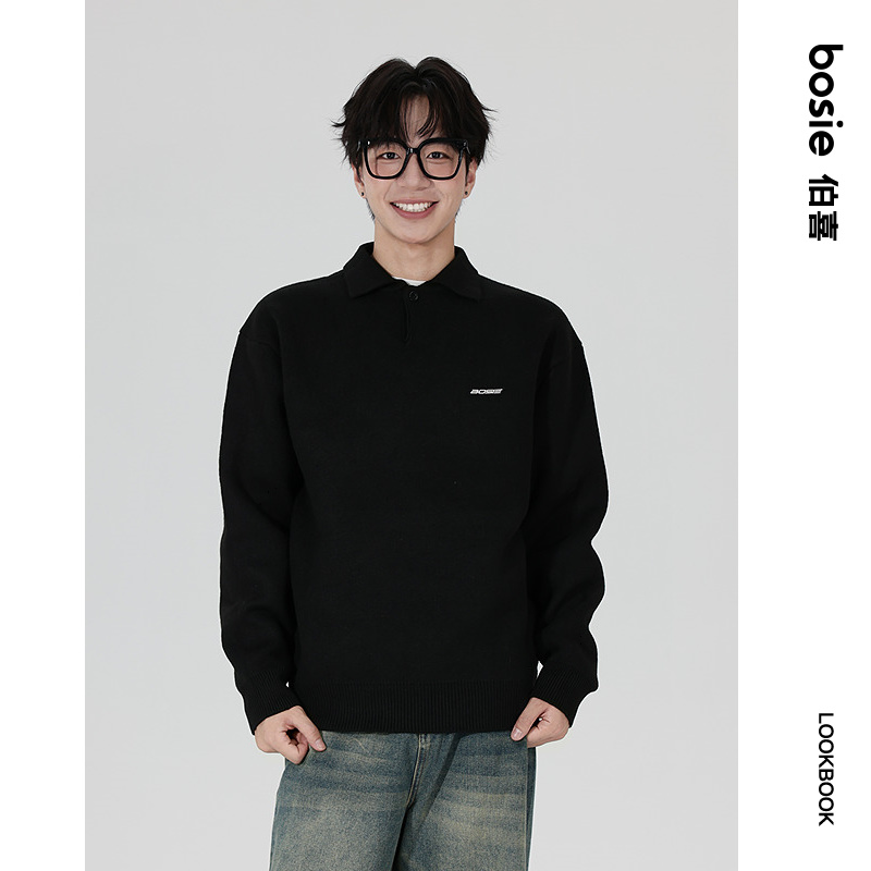 Polo衫 休闲长袖 男情侣宽松百搭外套潮 新款 bosie伯喜2025年秋季