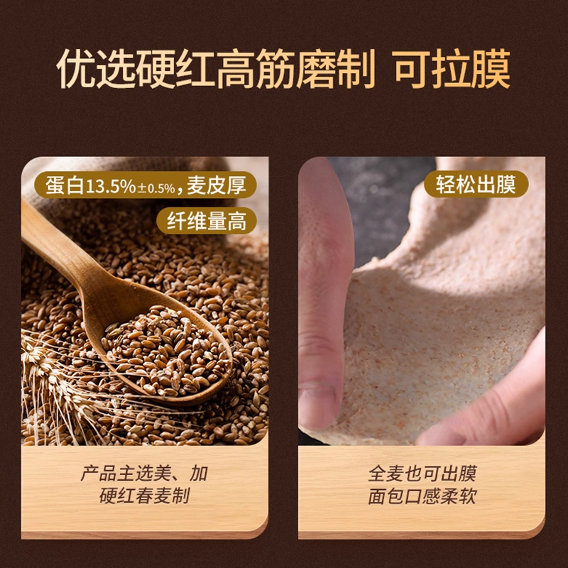 金像牌全麦面粉1kg含麦麸皮家用烘焙全麦高筋面包粉杂粮粗粮原料