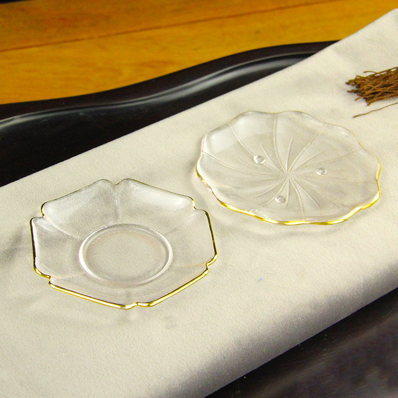 创意手工日式 耐热加厚透明玻璃茶具小吃碟茶具配件茶杯垫现货
