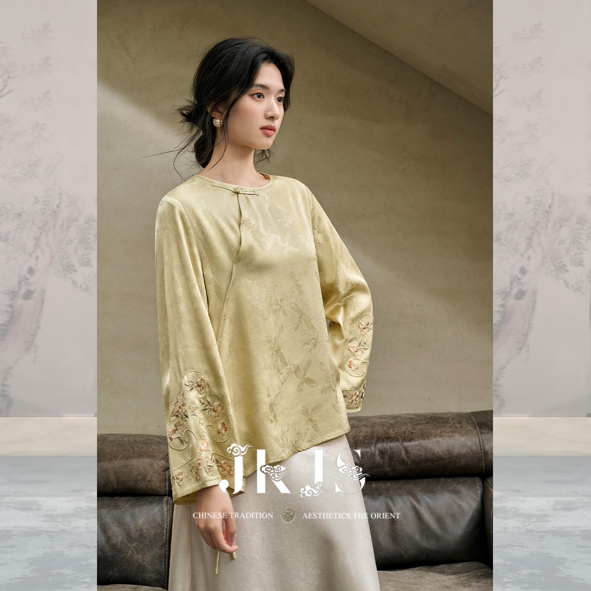 牛仔衬衫 设计师款 荷叶边宽松翻领长袖 秋冬新款 18345222 佐丹奴女装