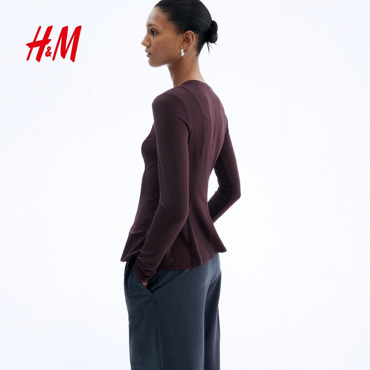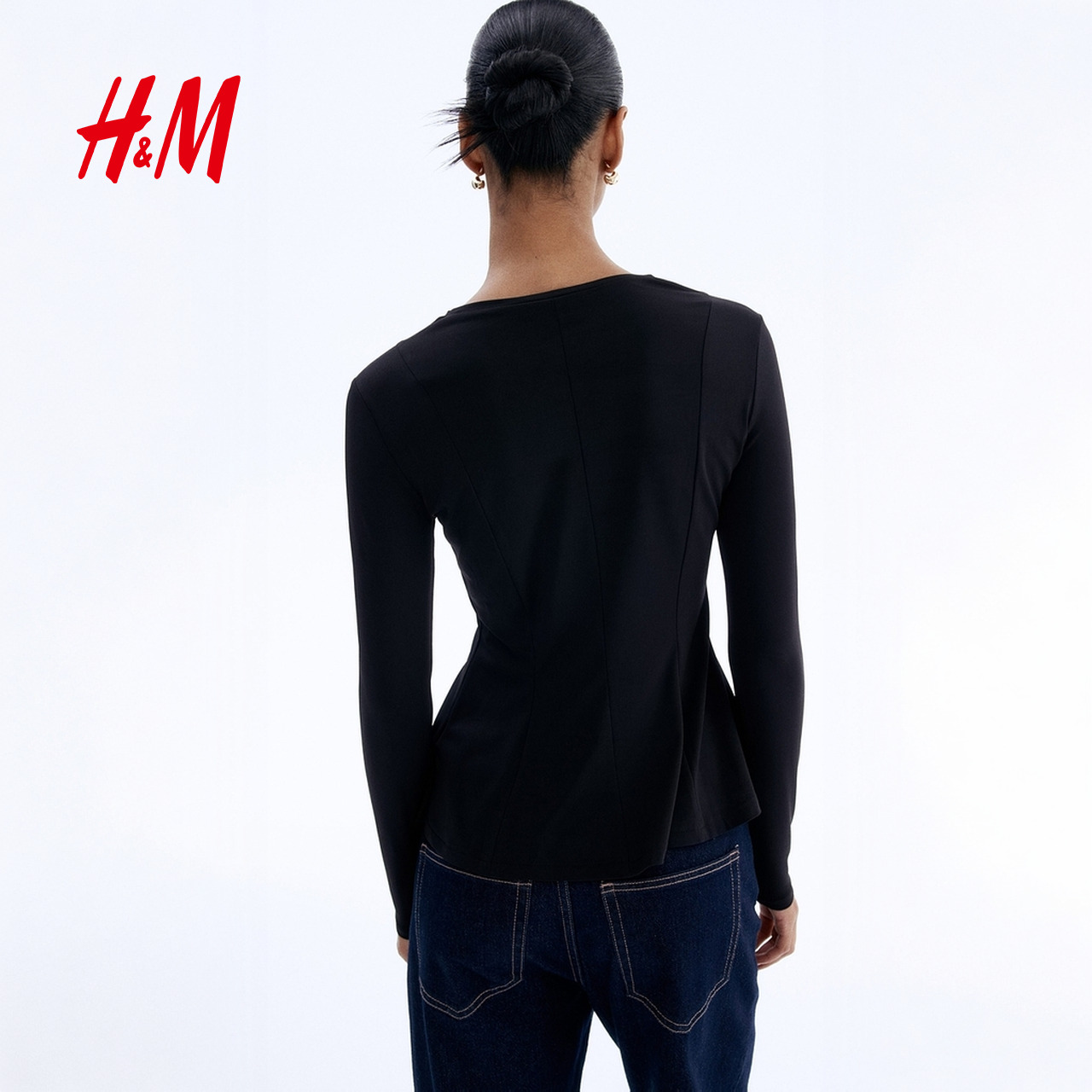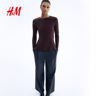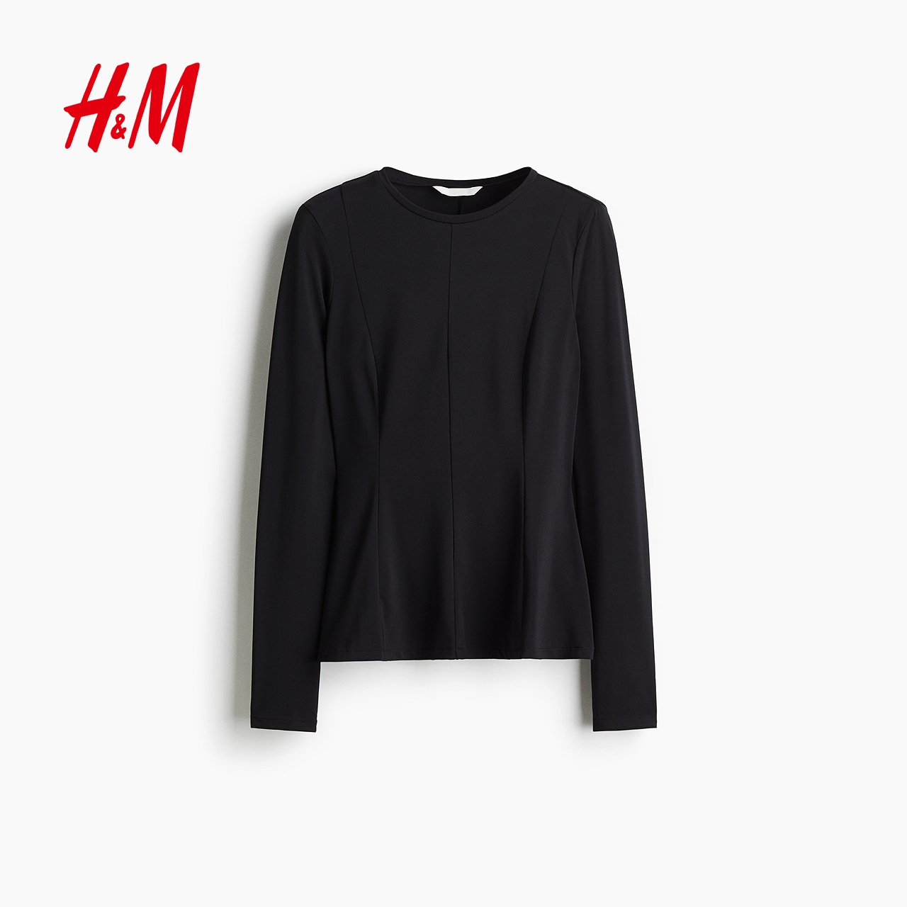 T恤2025秋季 气质休闲时尚 新款 饰裙摆长袖 上衣1306157 圆领装 HM女装