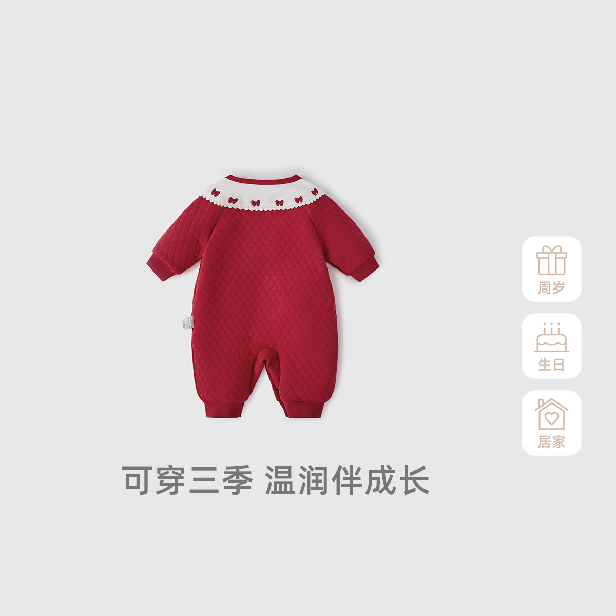 连体衣秋冬女婴儿红色喜庆加厚满月宝宝衣服 婴儿长袖 抗菌远红外