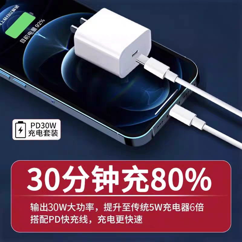 30W快充头适用苹果iphone16快充电器15pro充电头typec数据线正品 13max闪充12快速平板11plus 14插头手机PD套装