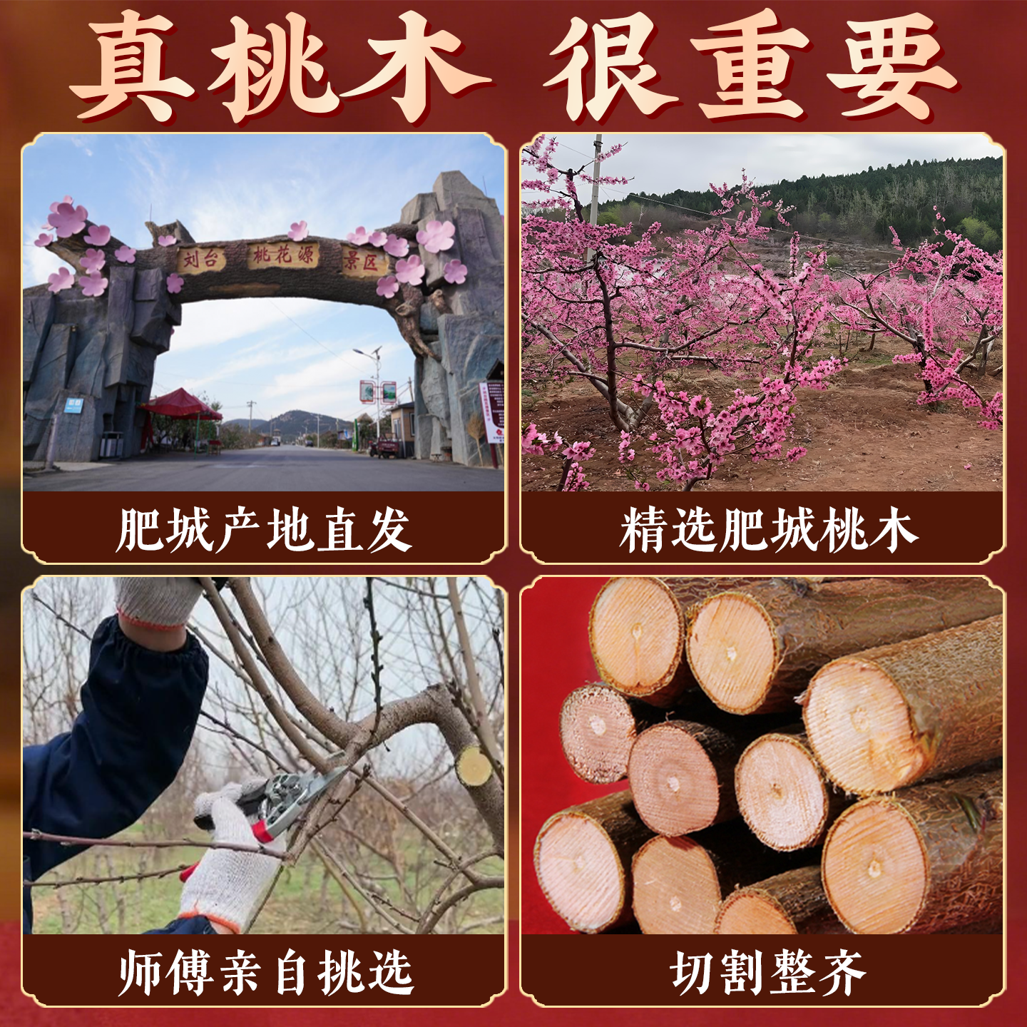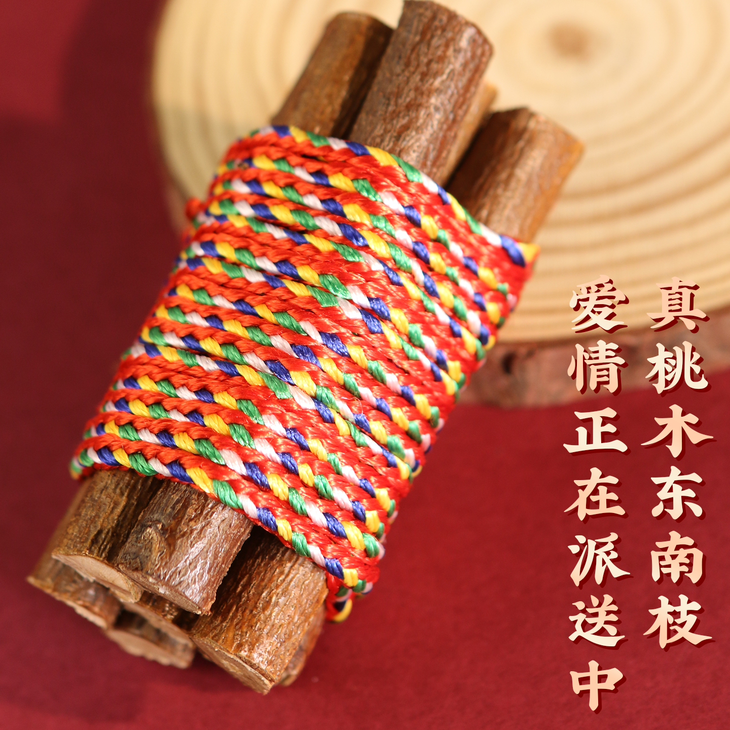招桃花东南7根桃枝绑五色线七厘米五彩绳编织泰山桃木招桃花摆件